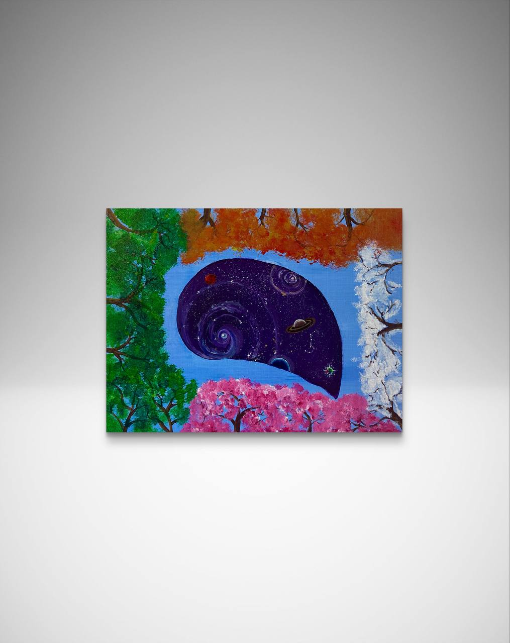 Если же взять энергокартину в руки и смотреть на неё держа над головой можно представить, как ты стоишь на земле, взглянув в небо и увидеть кусочек космоса. Чем больше ты смотришь вглубь космоса, тем больше ты растворяется в пространстве и стираешь видимые границы.